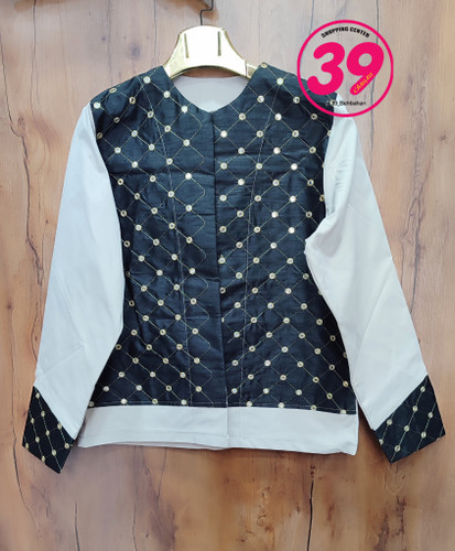 کت زنانه مدل رویا – کت لینن کجراه بهاره پولکدار در رنگ استخوانی و مشکی | سایز ۱ و ۲