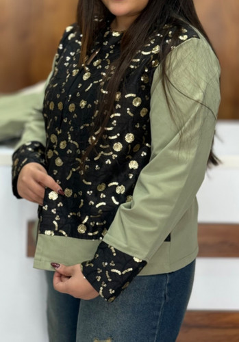 کت زنانه مدل مه لقا – کت لینن کجراه بهاره پولکدار در رنگ سبز و دو طرح زیبا | سایز ۱ و ۲