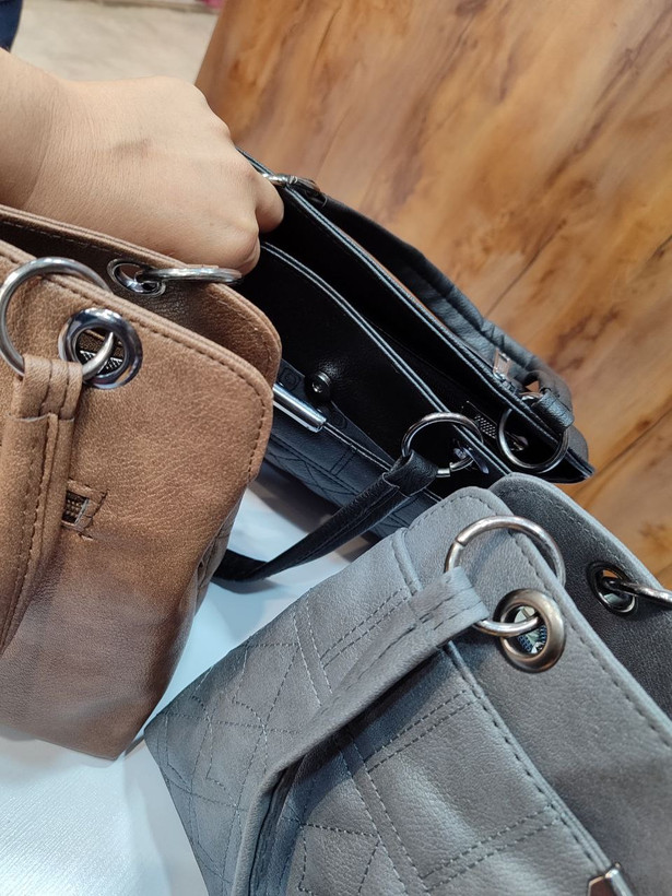 داراي بند دوتاي دستي (طرح حلقه ايي) ، به همراه بند بلند دوشي چرمي