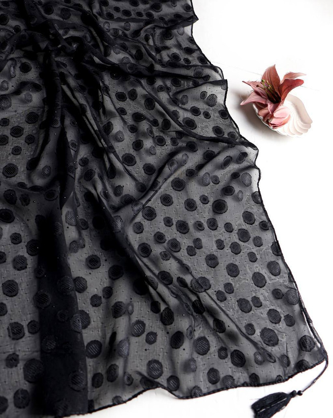 شال تک رنگ مشکی ، حریر طرح دار نگین دار