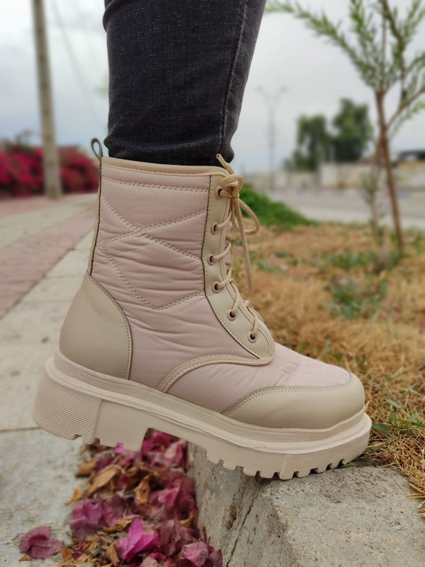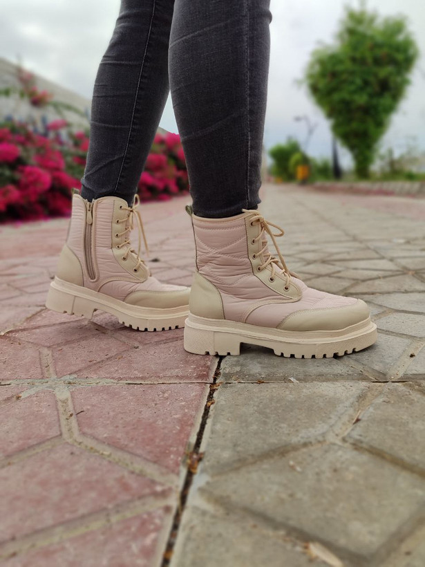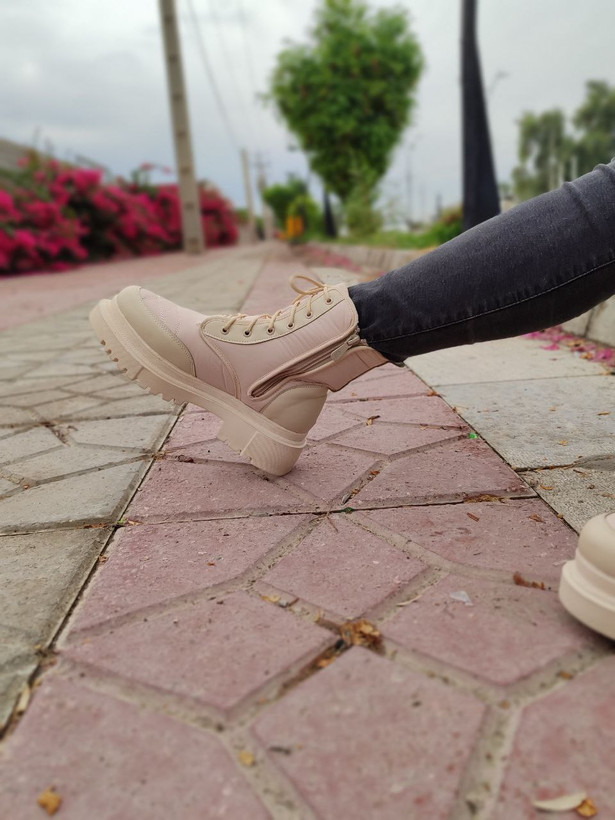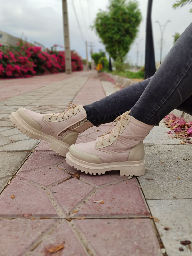 نیم بوت طبی بغل زیپ بنددار زیبا و سبک با رویه ضدآب دو رنگ کرم و مشکی سایزبندی 37تا40