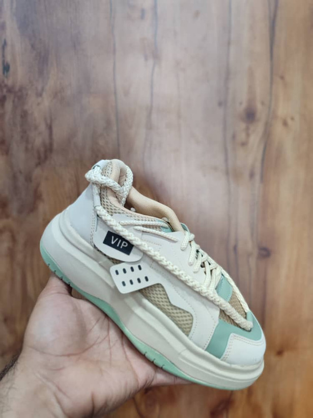 کفش اسپرت دخترانه مدل vip دو رنگ مشکی سفید و کرم سبز سایزبندی ٣٧تا٣٩