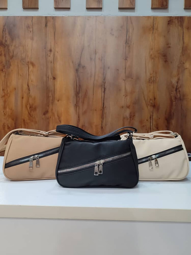 کیف دوشی دخترانه نانسی زیپ کج در سه رنگ مشکی و کرم تیره و کرم روشن