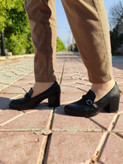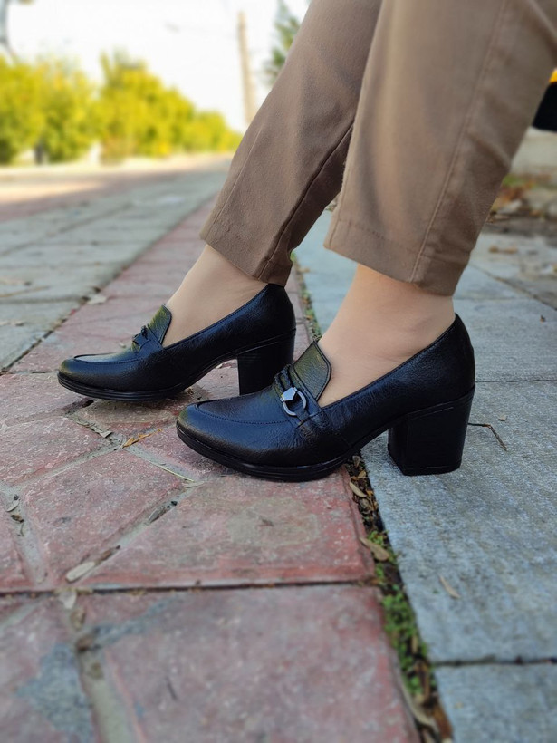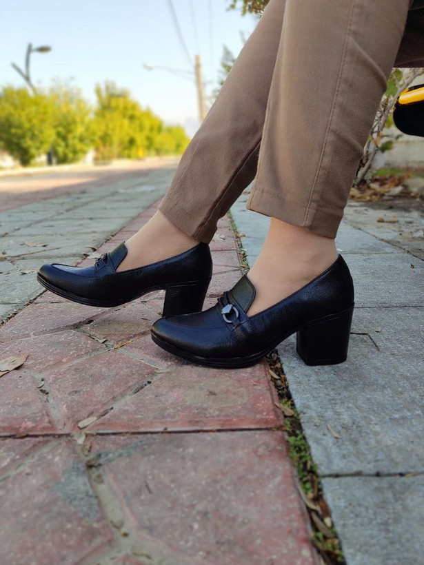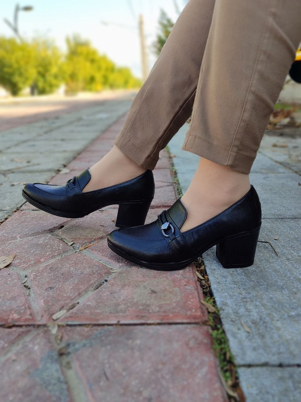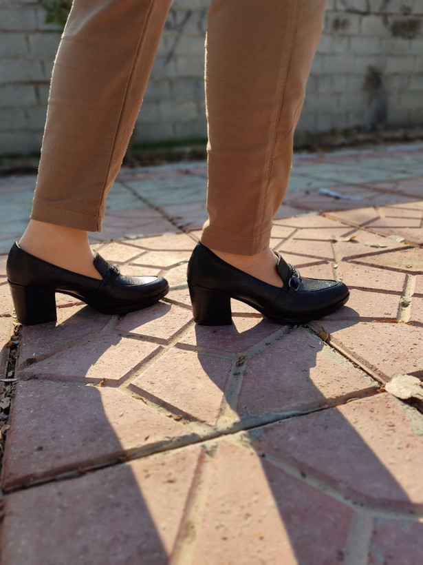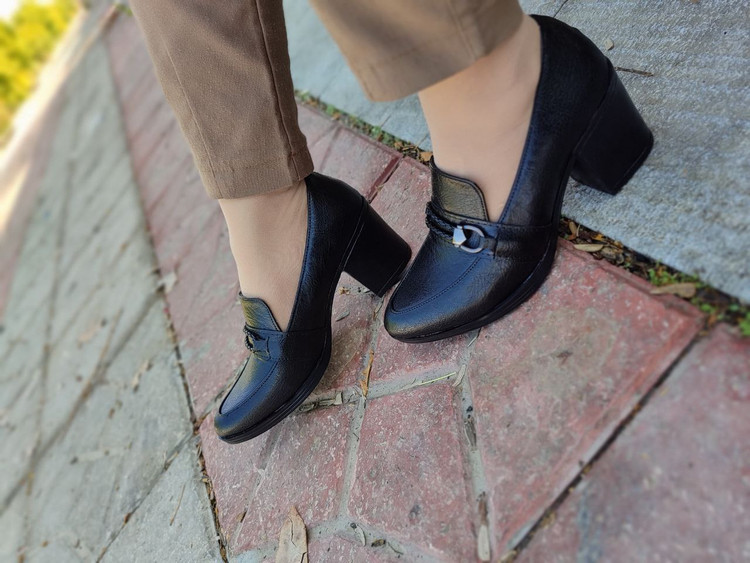 کفش طبی فوق العاده راحت و زیبای پاشنه ۷ سانت مدل بافت حلقه دار تک رنگ مشکی
