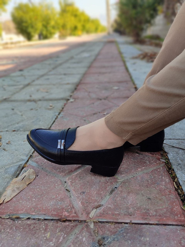 کفش طبی کالج پاشنه دو سانت مدل دو سگک تک رنگ مشکی سایز ۳۷ تا ۴۰