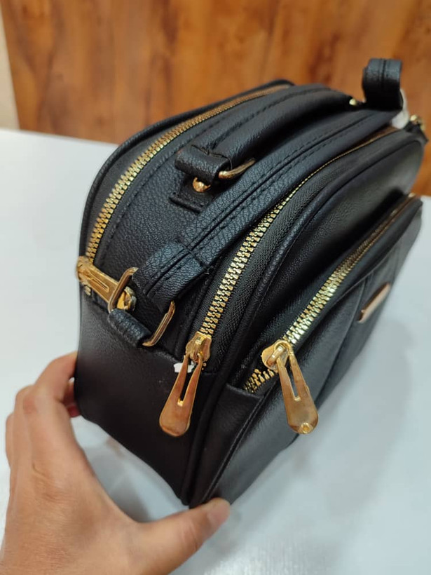 دارای دو محفظه زیپ دار مجزا در مرکز، یک محفظه زیپ دار در جلو و یک محفظه زیپ دار در پشت کیف