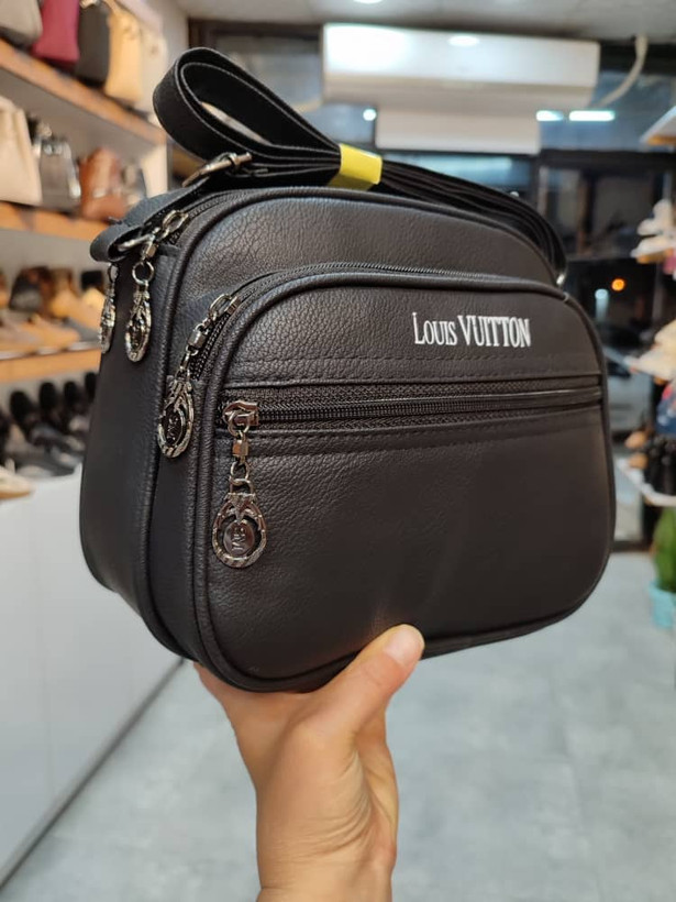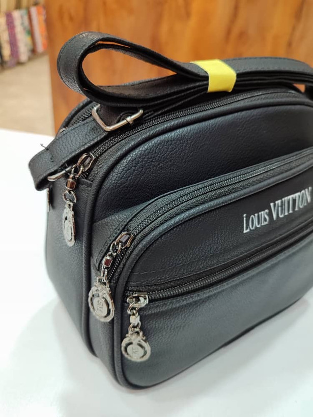 کیف دوشی پنج خانه مجزای تک رنگ مشکی، با سر زیپ های بسیار جذاب