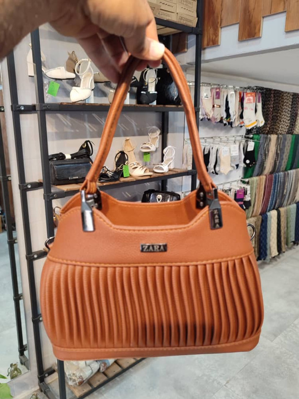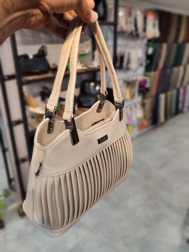 کیف دستی دوشی مدل پلیسه، دو خانه مجزای زیپ دار،رنگبندی:کرم-عسلی-استخوانی-مشکی