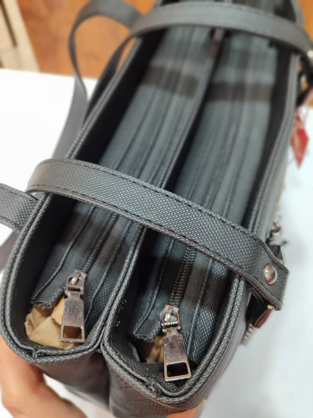 دو محفظه مجزای زیپ دار در بالای کیف و یک محفظه زیپ دار هم در پشت کیف