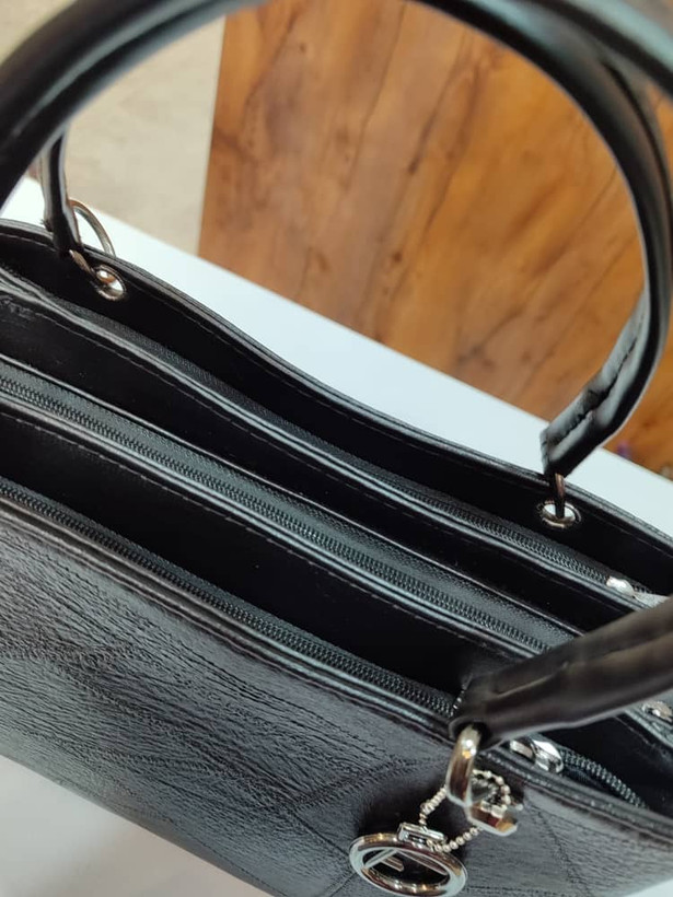 کیف سه خونه مجزای زیپ دار تک رنگ مشکی دستی و دوشی