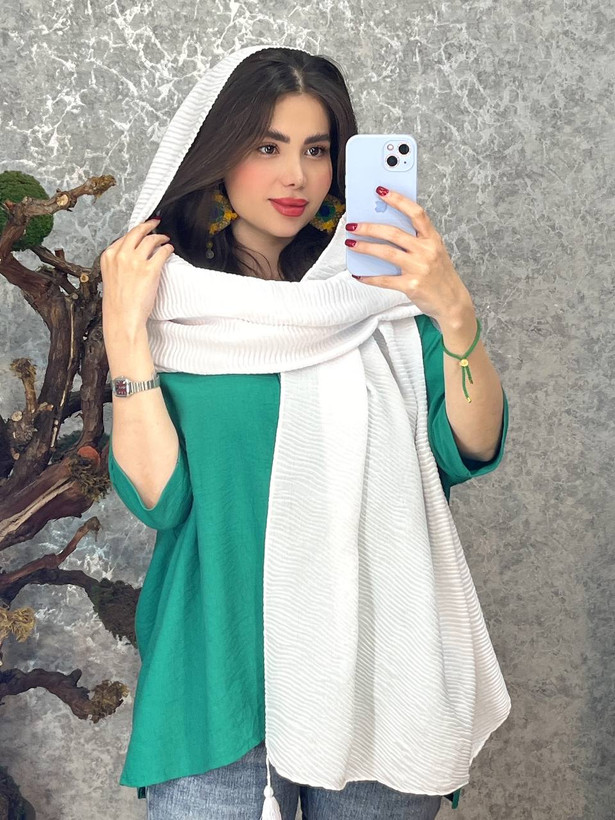 این شال سفید، یه ترکیب بینقص از سادگی، خنکی و شیک بودنه!
