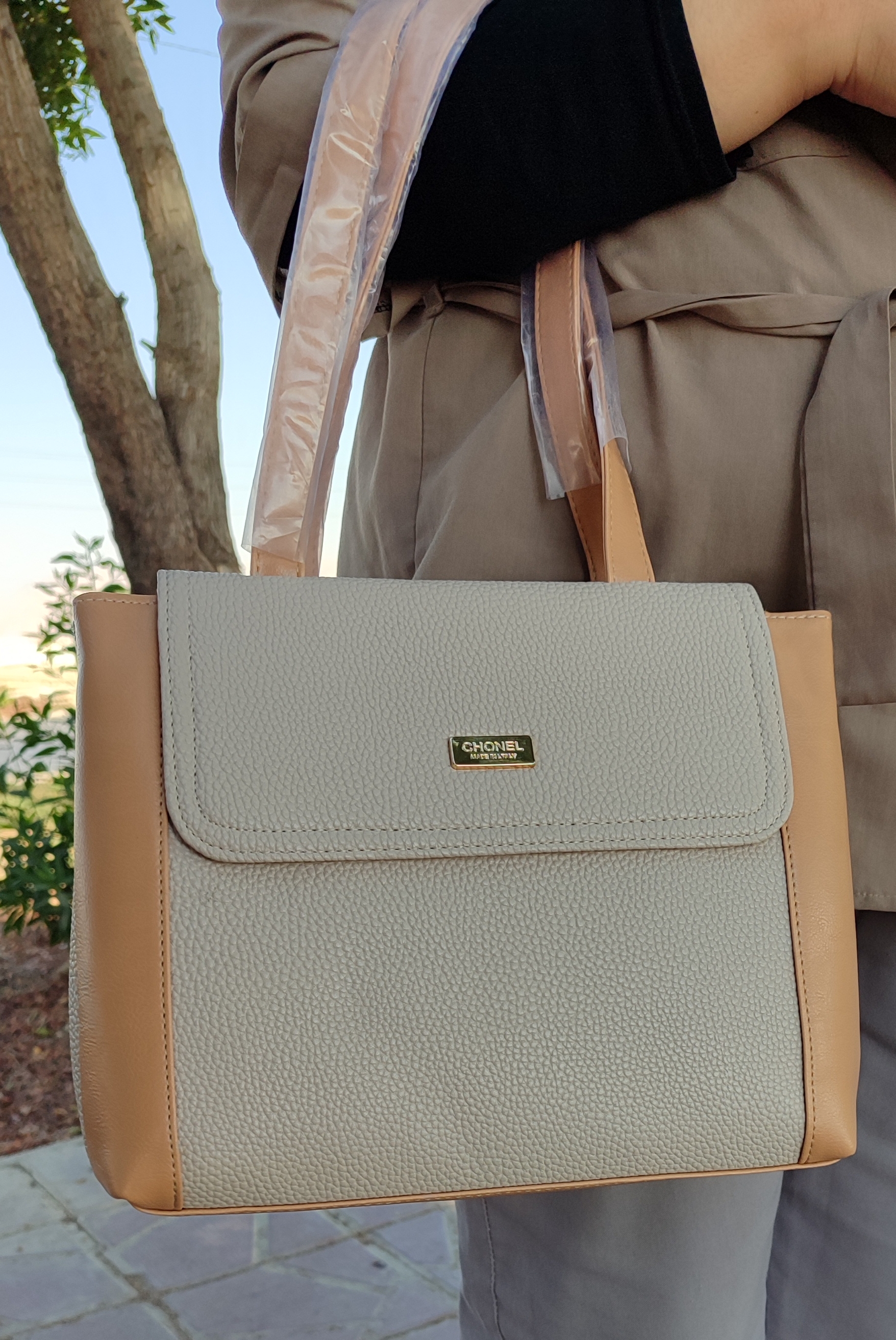 این کیف از چرم مصنوعی شرانگ با کیفیت بالا ساخته شده که هم ظاهر شیک داره و هم دوام عالی. دستهها محکم و خوشفرم هستن و کیف بهخاطر ایستادگی خوبش، همیشه مرتب روی دست میشینه.