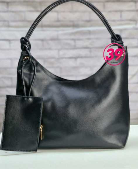کیف شل (لش) با بند دو تایی گرد مدل گره ای | همراه با یک کیف کوچک زیپ دار آویزی، بسیار لاکچری، شیک و سبک تک رنگ مشکی