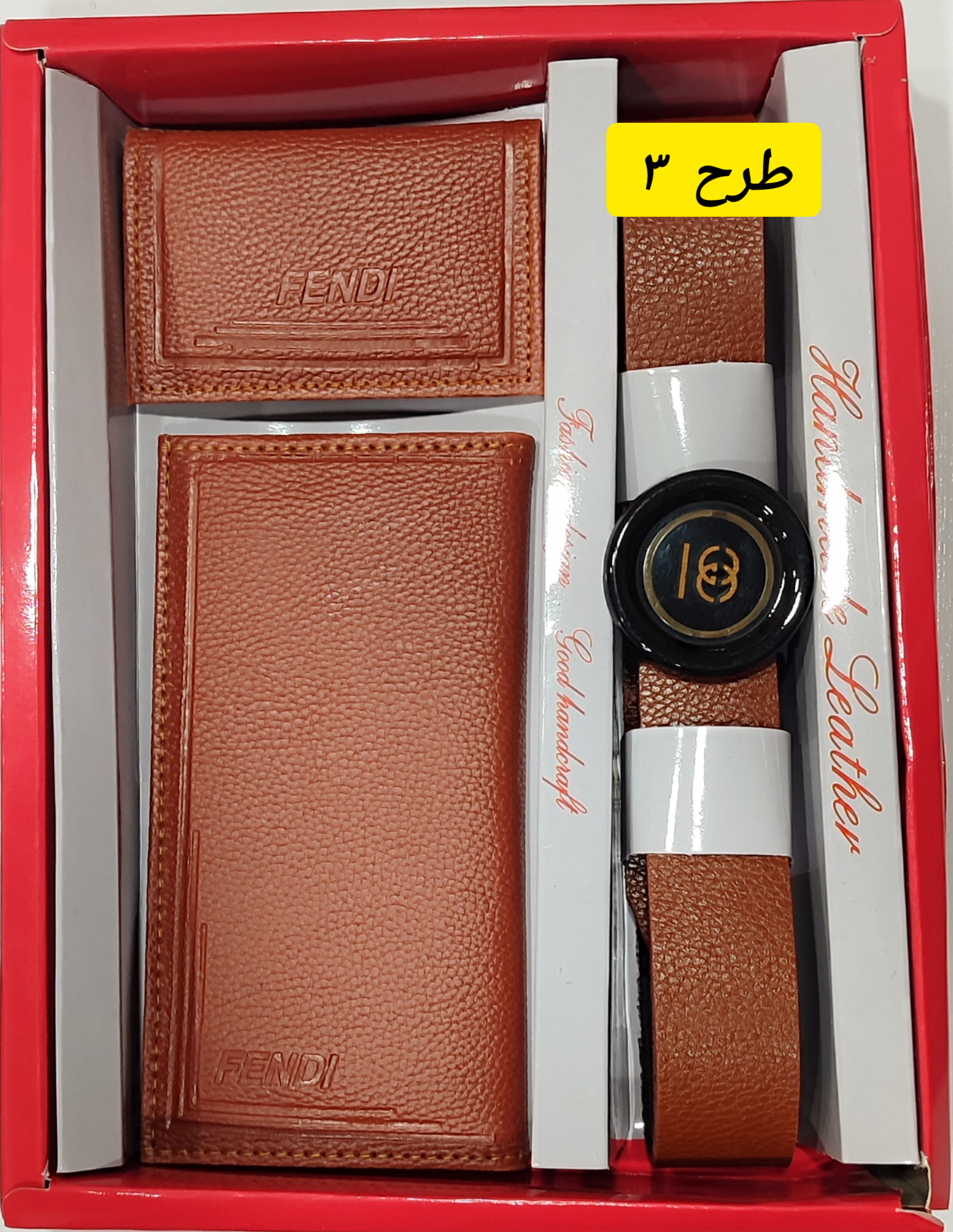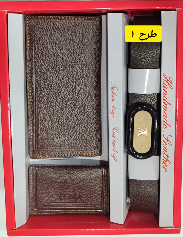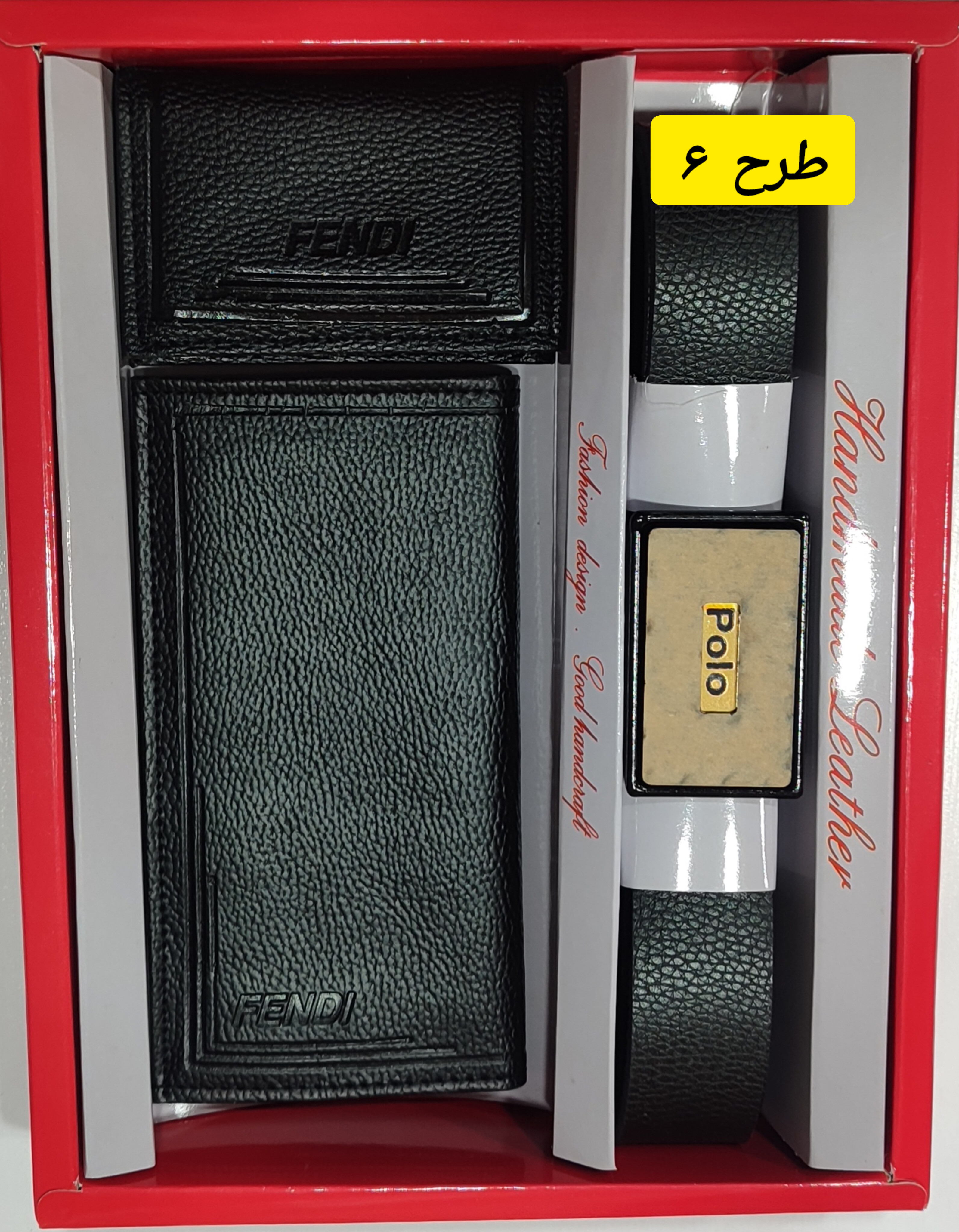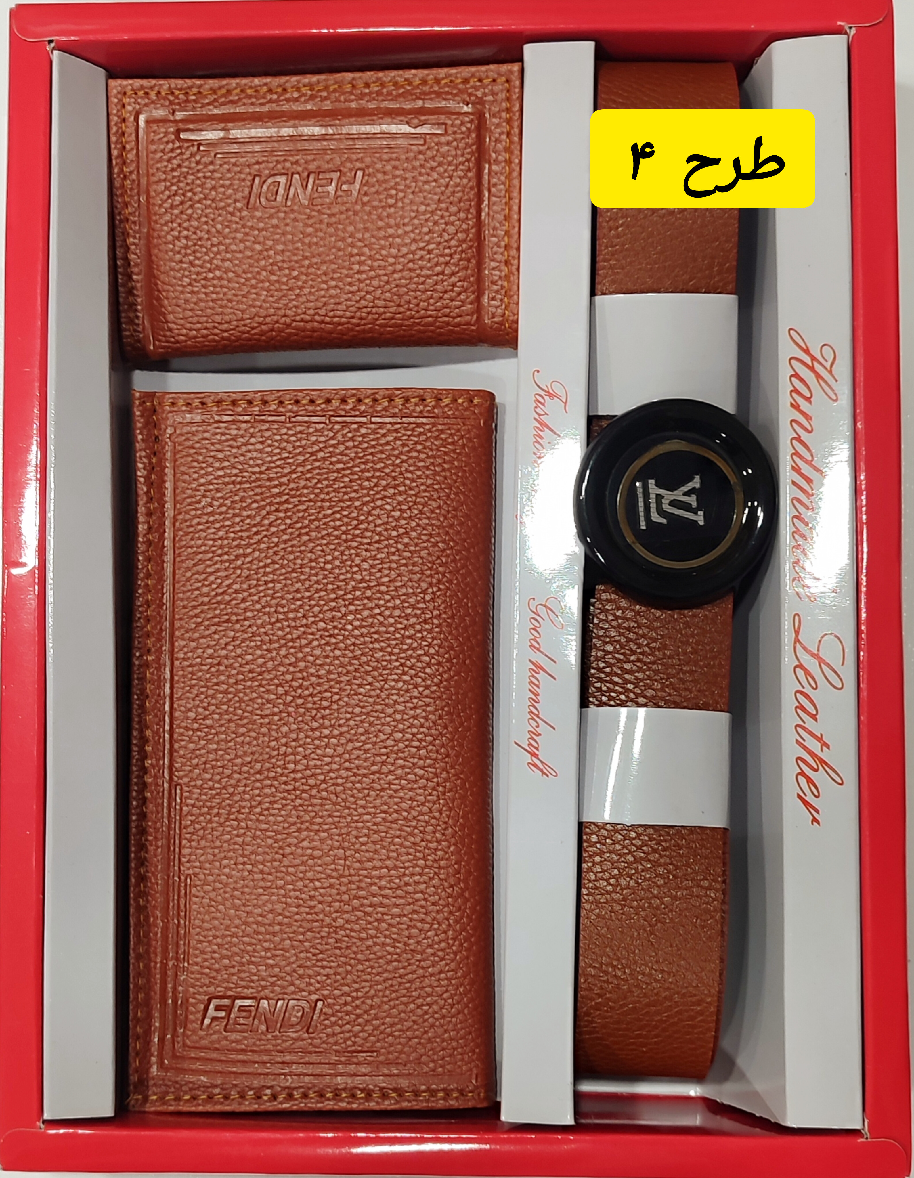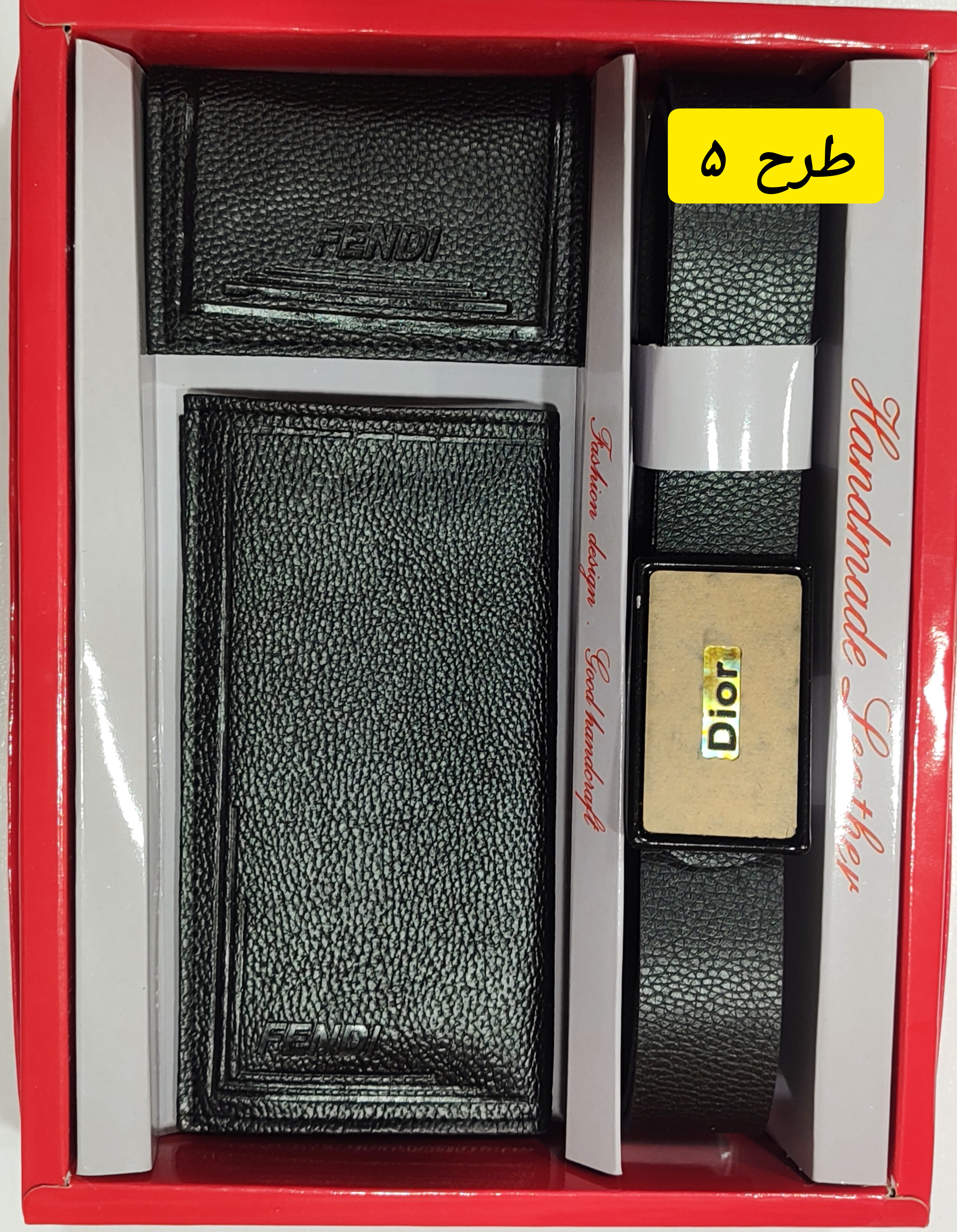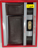 ست سه تیکه کیف پول کُتی، جاکارتی و کمربند با سگک مردانه