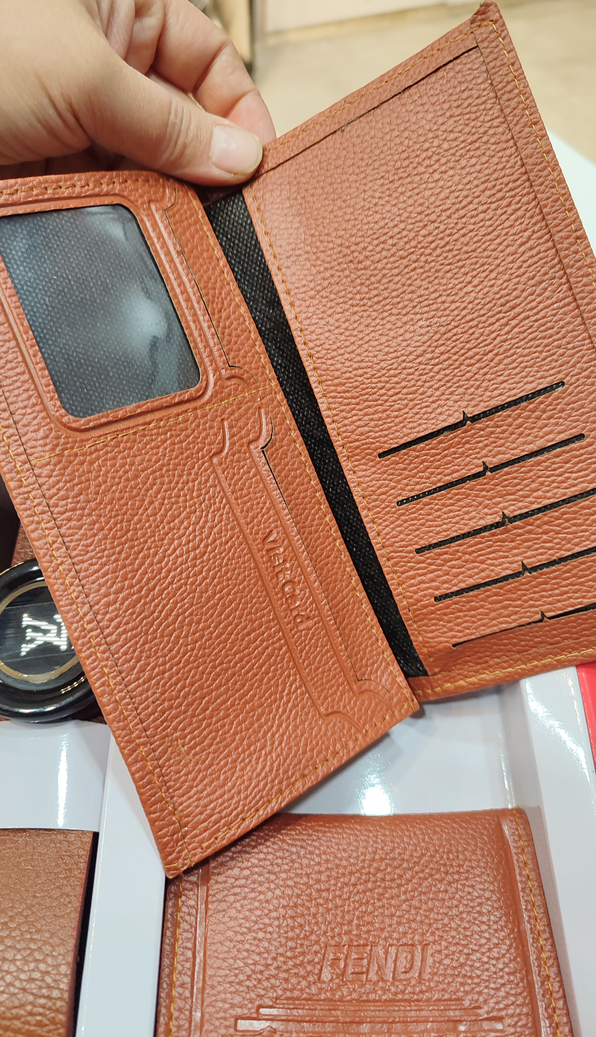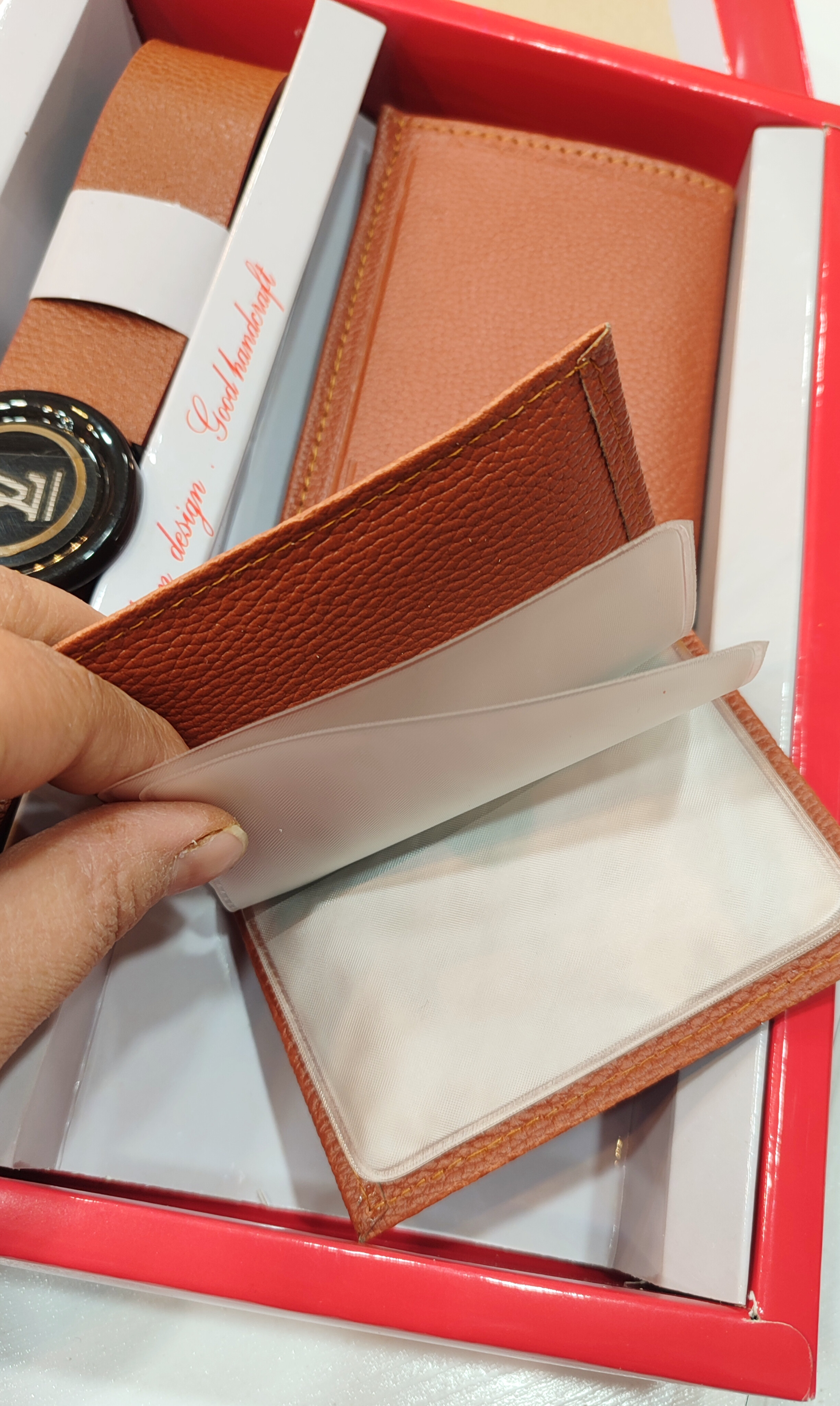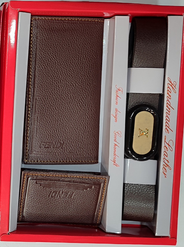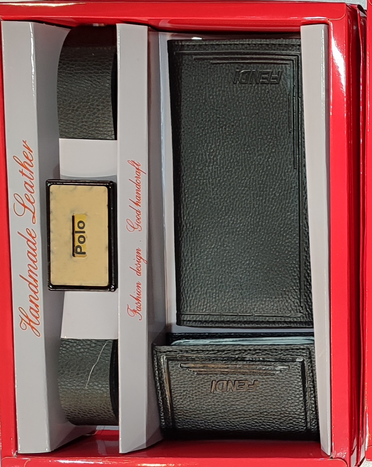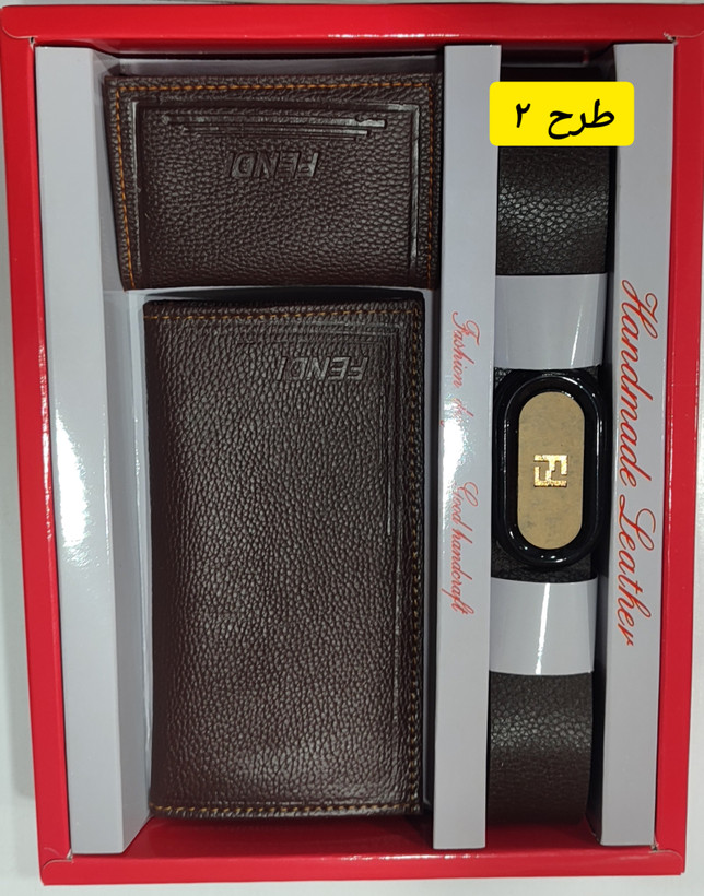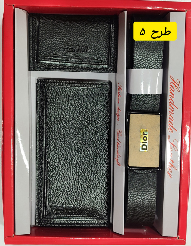 ست سه تیکه کیف پول کُتی، جاکارتی و کمربند با سگک مردانه