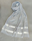 شال هایتی ترک طوسی، انتخابی ایدهآل برای استایلهای روزمره و مجلسی است. این شال با جنس هایتی درجهیک، لطافت، سبکی و سرخور بینقصی دارد که باعث ایستایی عالی آن روی سر میشود. ترکیب راهراههای ظریف و نوارهای شایندار، جلوهای خاص به آن بخشیده و آن را مناسب انواع استایلها کرده است. قواره 200×70 سانتیمتر، استفاده و فرمدهی آن را بسیار راحت میکند.