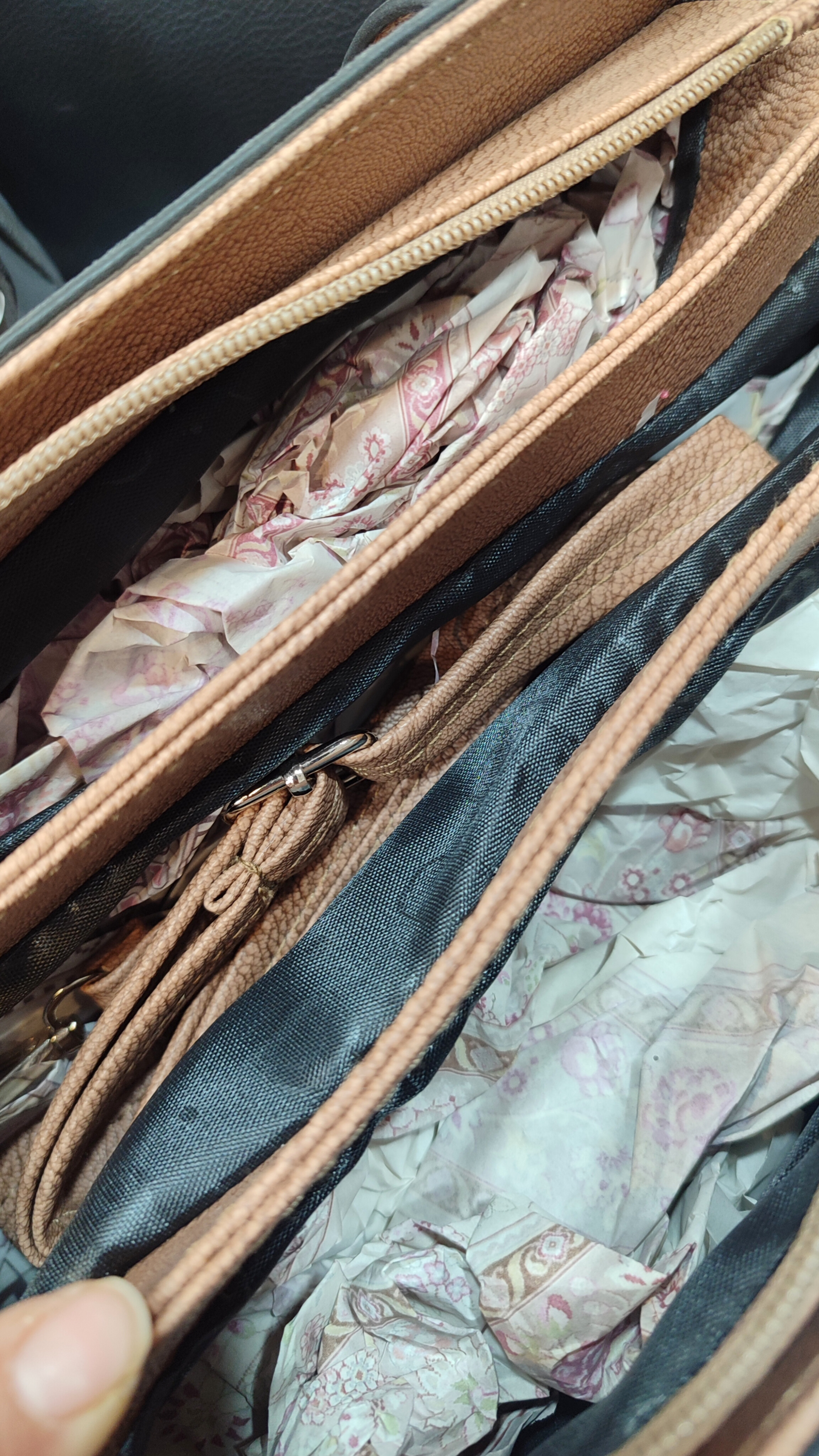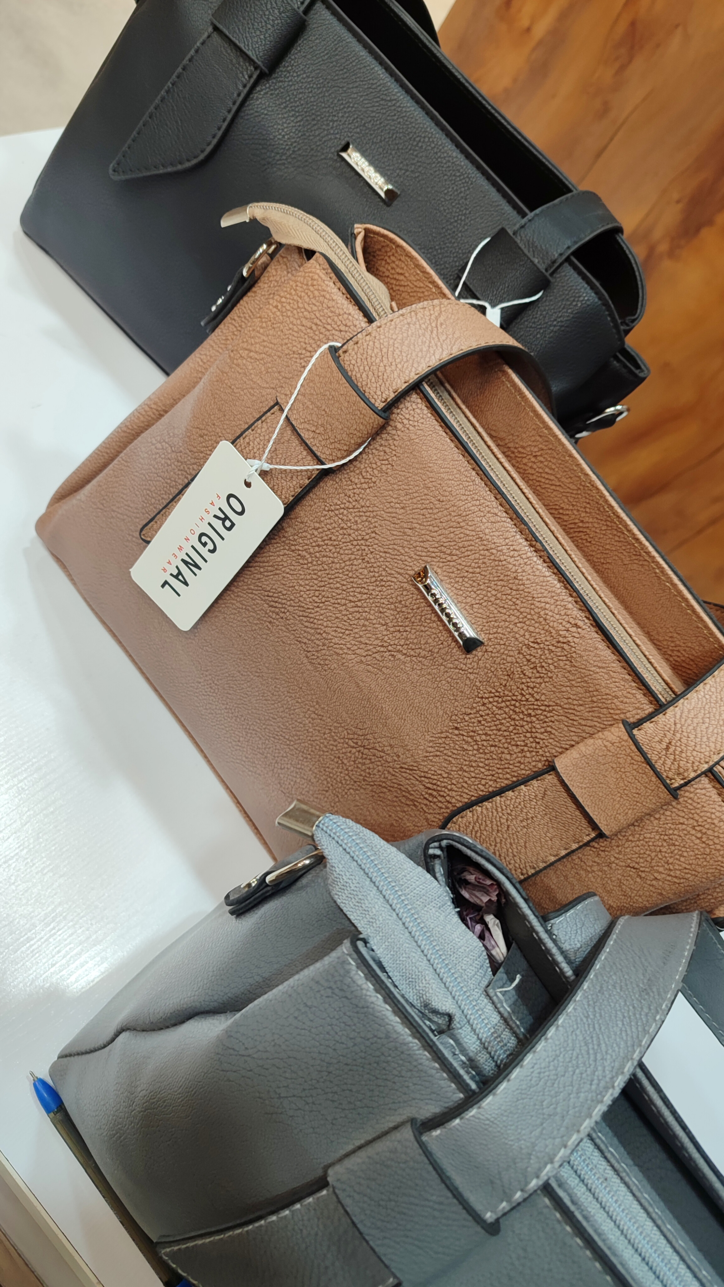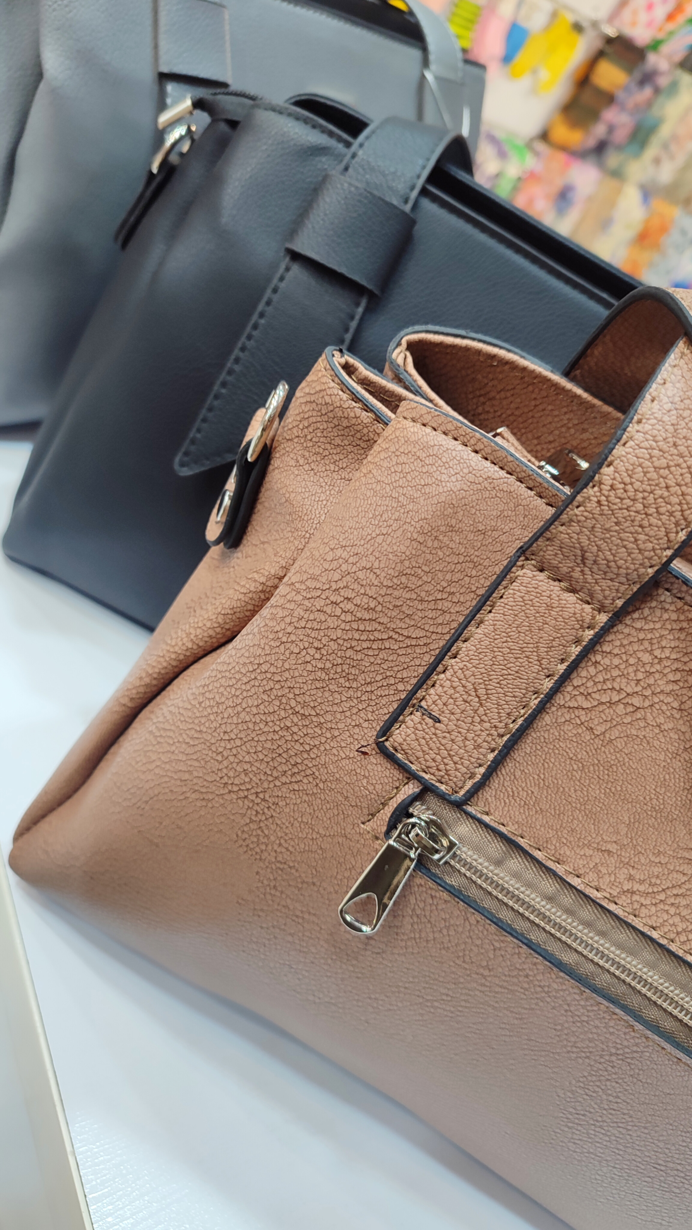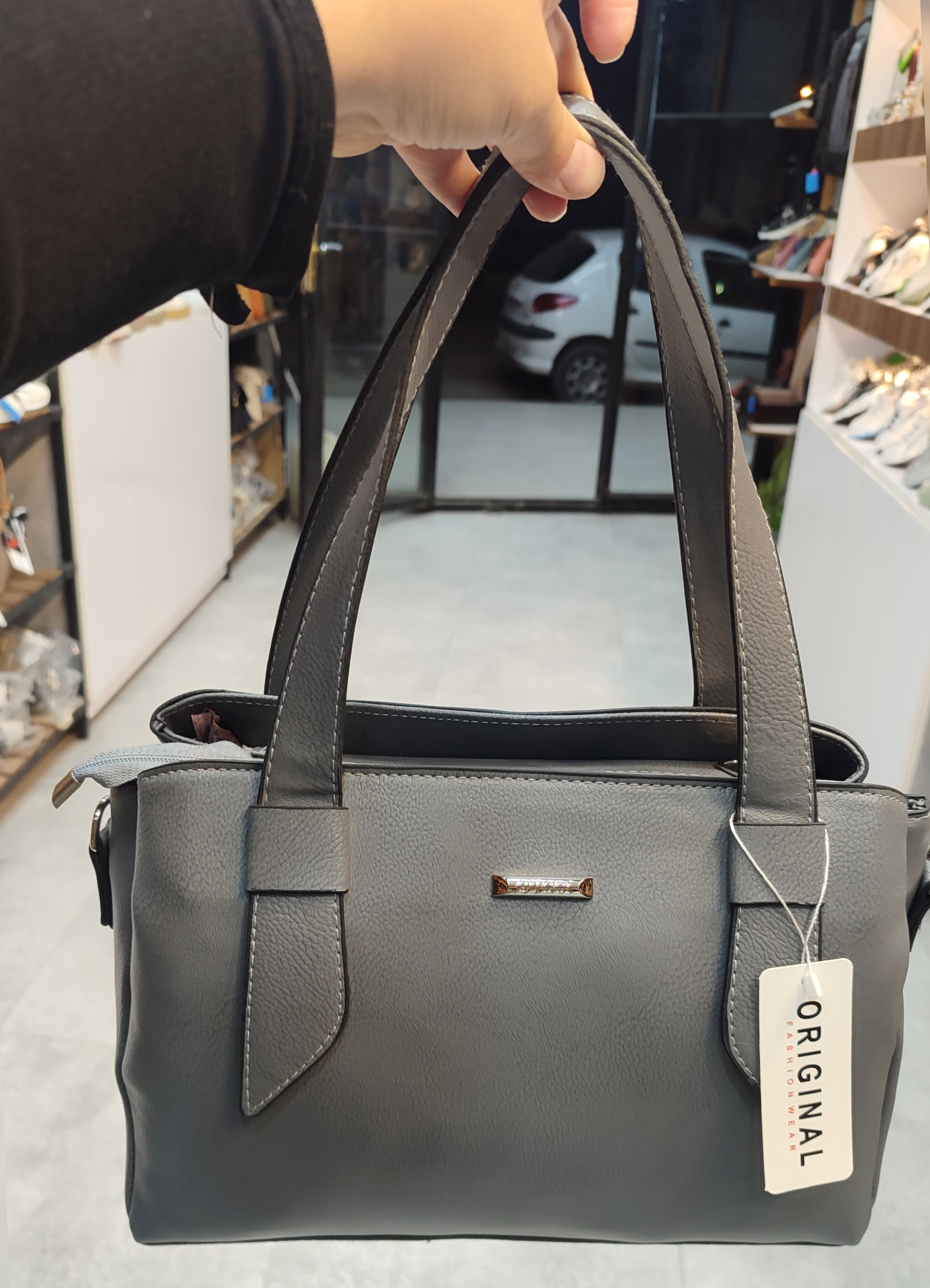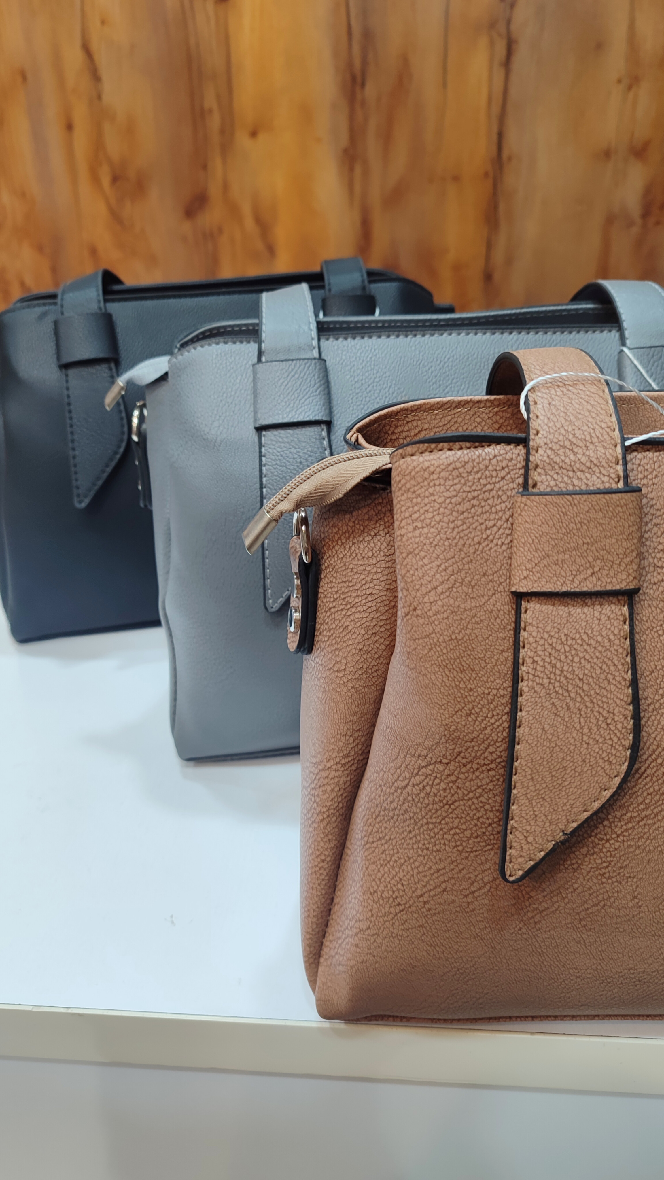 کیف زنانه سه‌خانه مجزا با زیپ مرکزی | چرم مصنوعی و بسیار شیک و جادار | مدل لعیا | بند دستی دوتایی و دوشی مجزا | در سه رنگ زیبای طوسی و نسکافه ای و مشکی