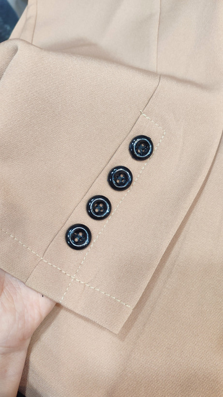 دوخت مزونی حرفهای: دوخت مزونی این کت، نشاندهنده دقت و ظرافت در جزئیات و کیفیت بالای تولید است. هر درز و دوختی با وسواس انتخاب شده تا دوام و زیبایی کت تضمین شود.