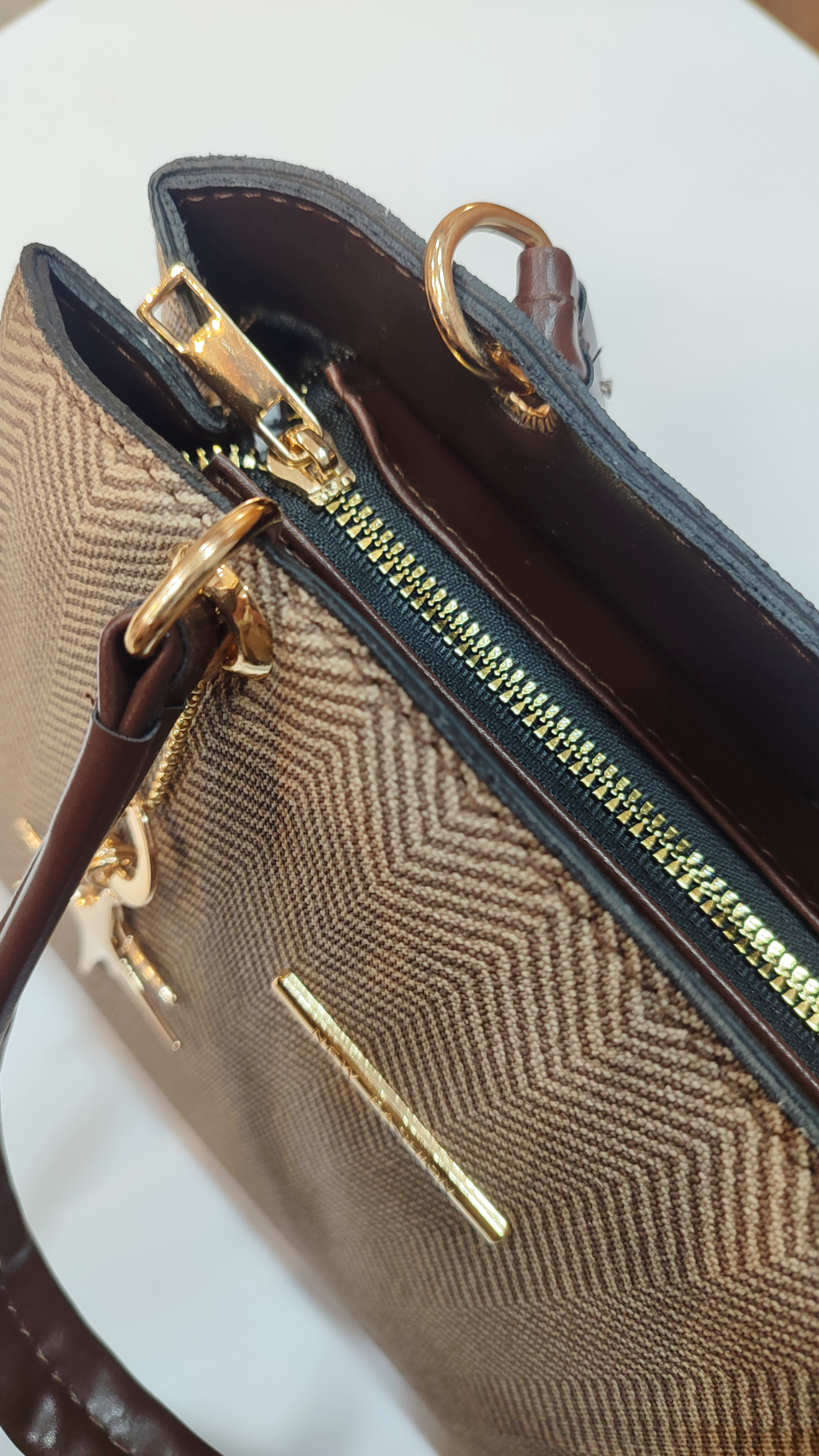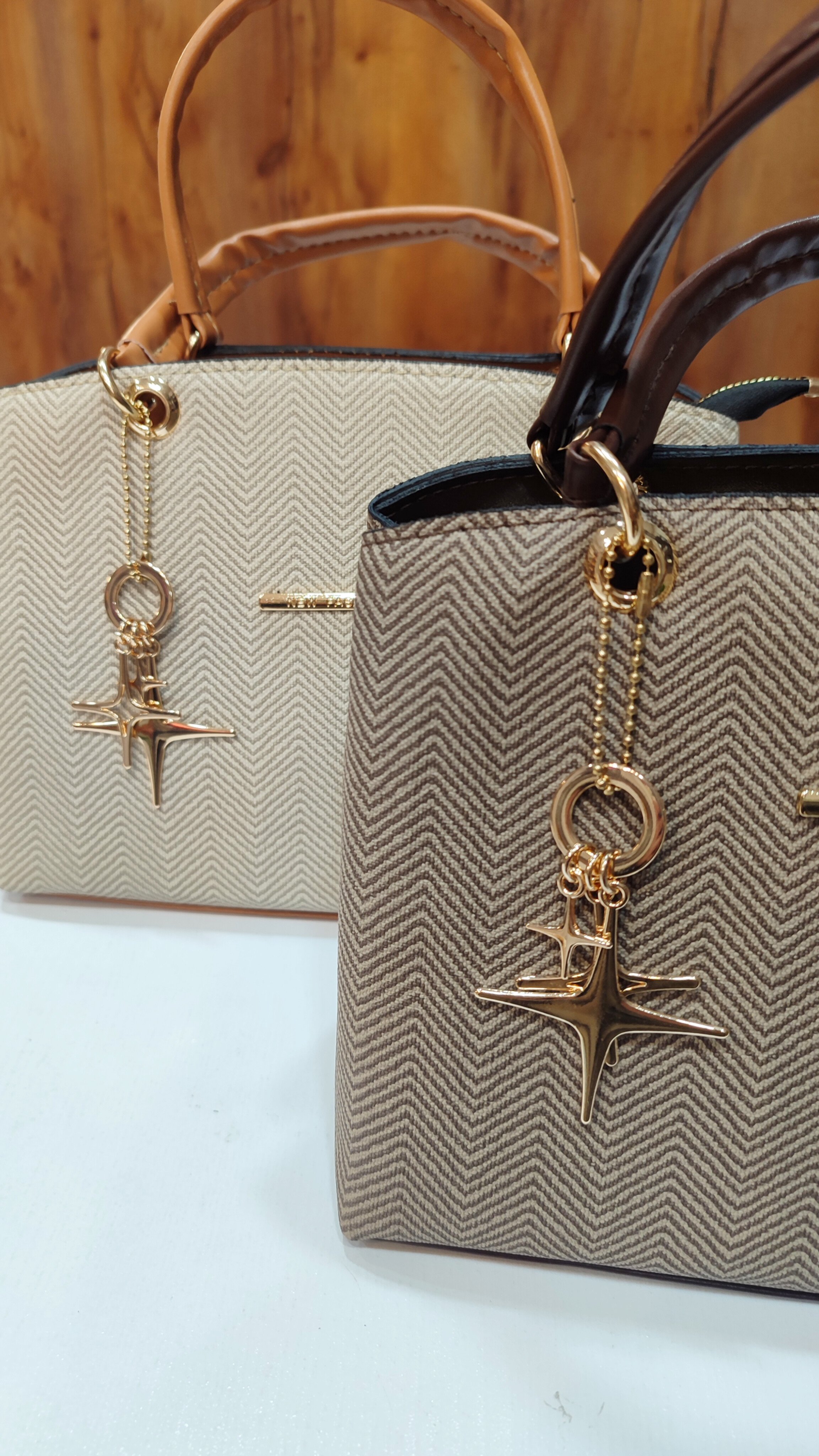 کیف دستی و دوشی زنانه مدل ستاره؛ تلفیقی شیک از چرم مصنوعی، طرح حصیری زیگزاگی و ظرافت مجلسی، در دو طرح زیبا