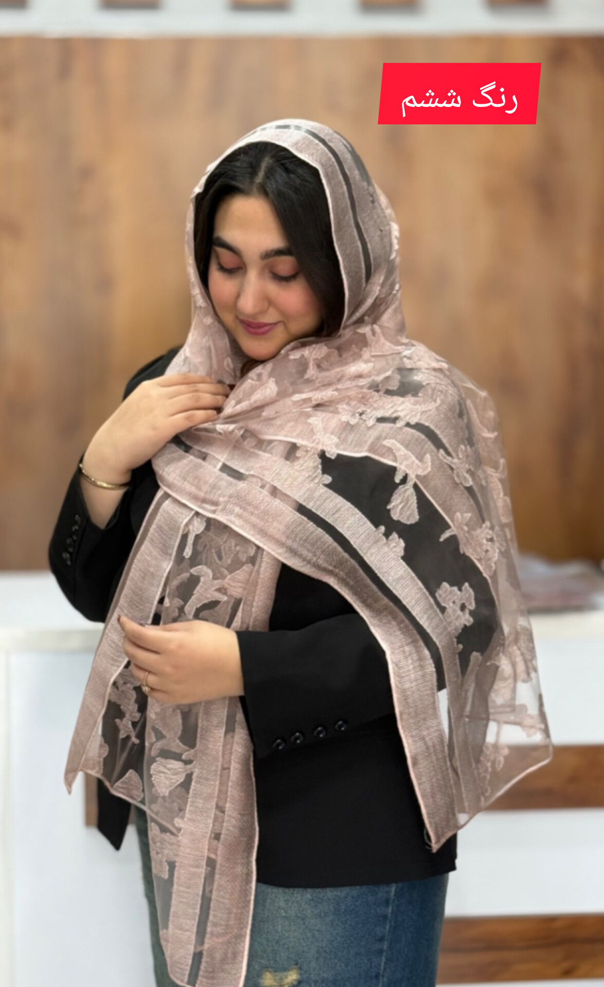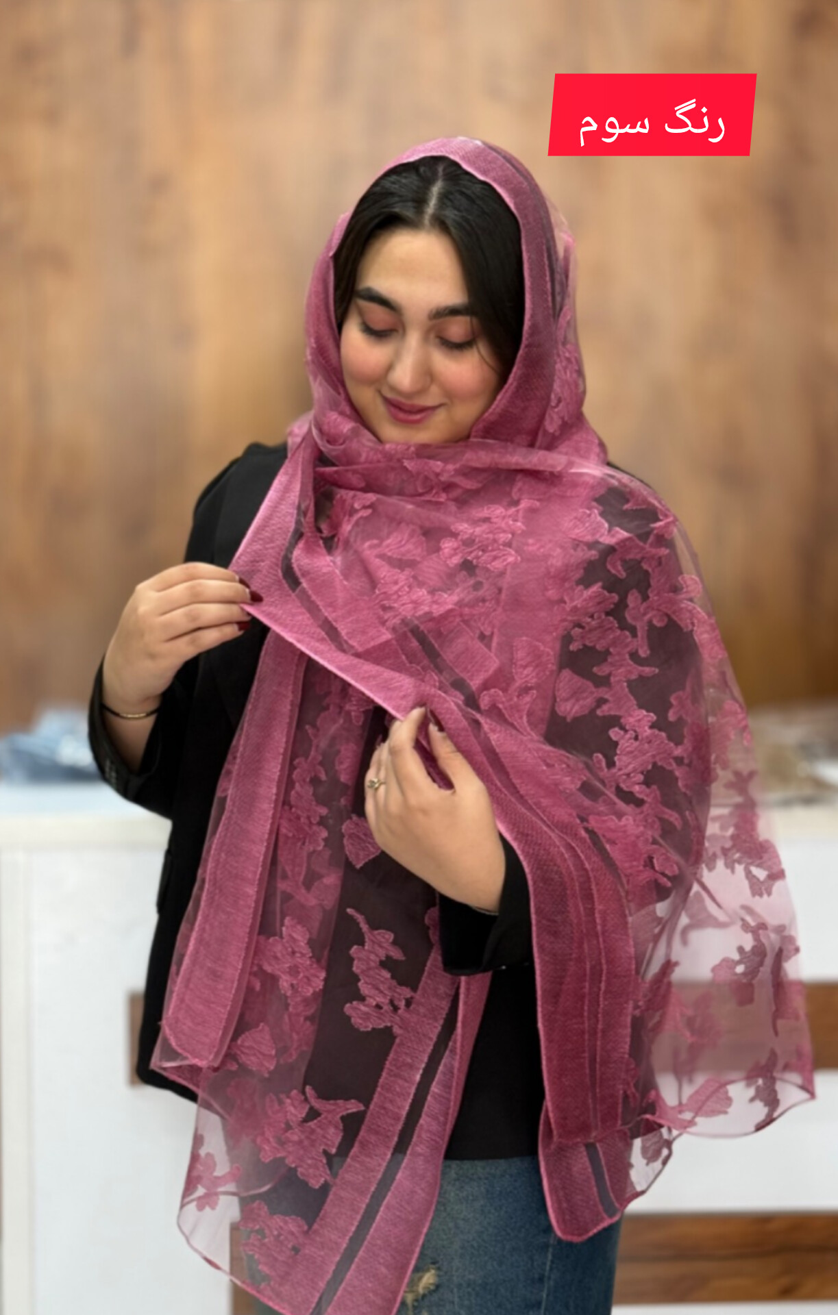 شال زنانه وارداتی مدل فلور | شال دانتل گل‌دار شیک و خاص با رنگ‌بندی جذاب و سرخور بی نظیر